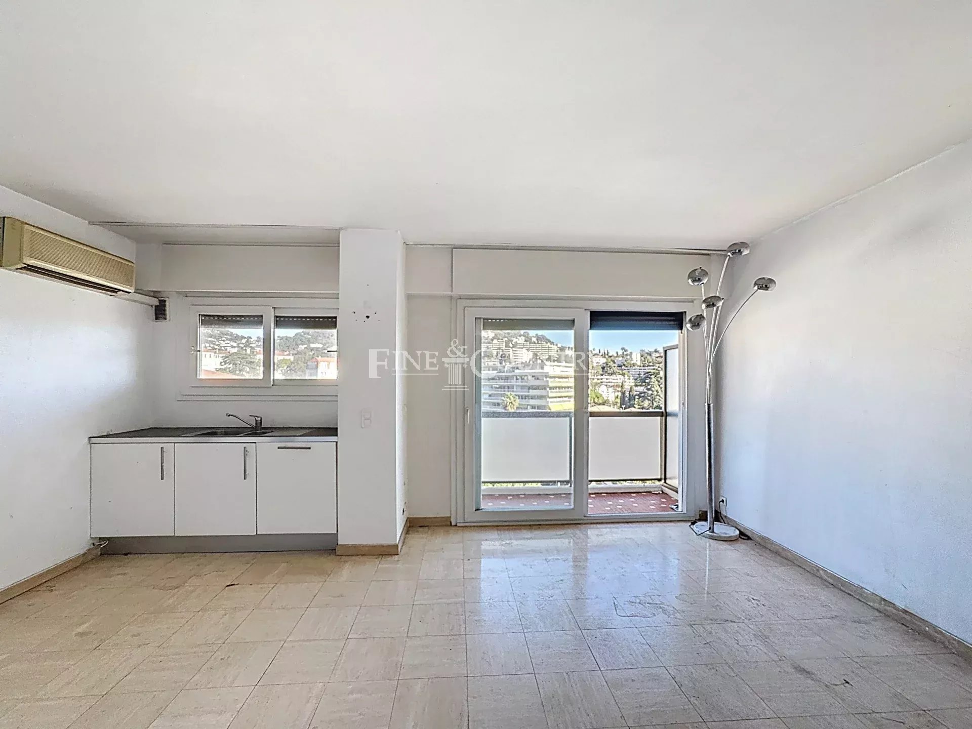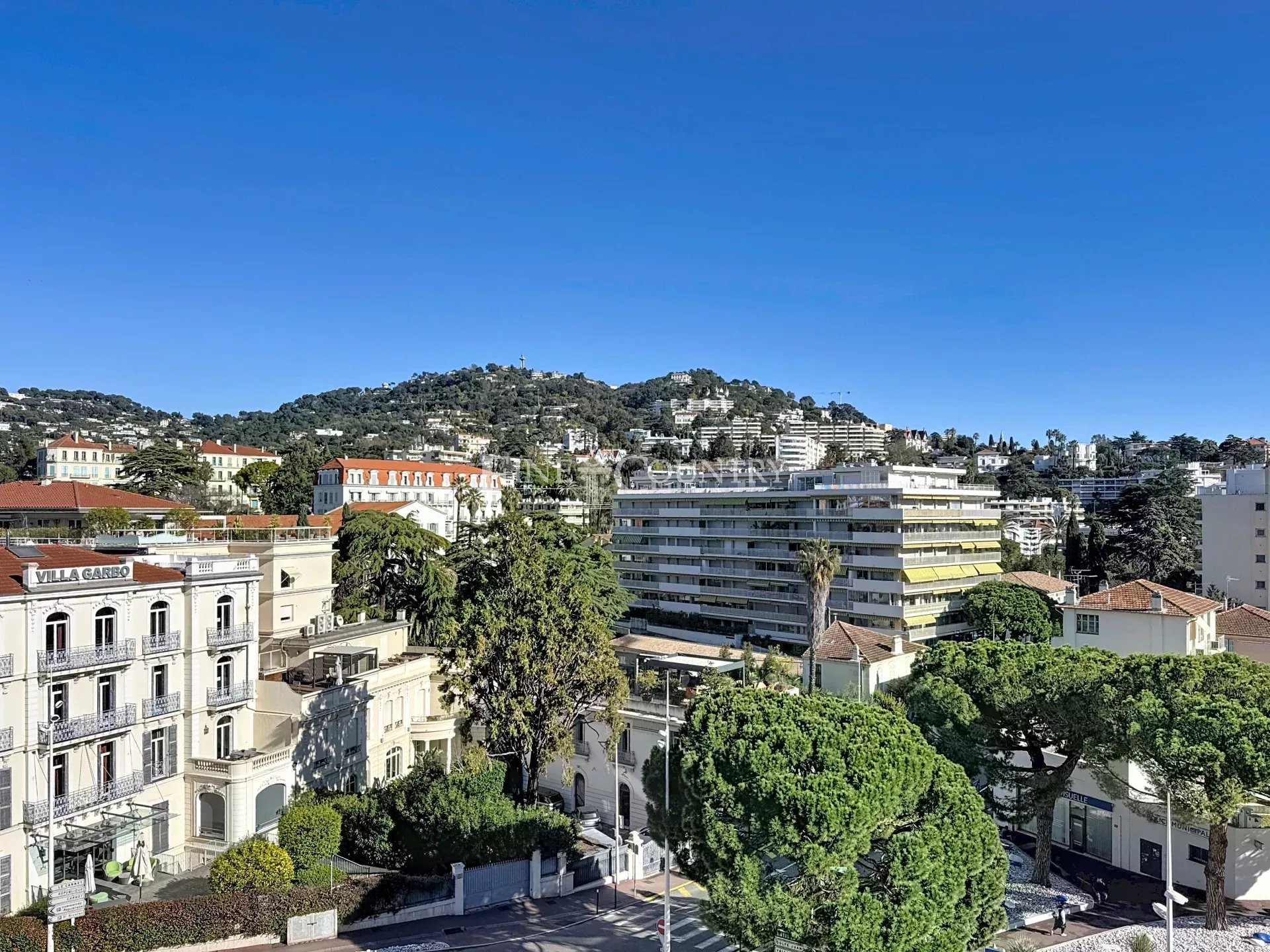 REF : 2026-380 - One bedroom apartment of approximately 47m2 to renovate on the 6th floor of a 7-story building at the end of Rue d’Antibes and close to the beaches. It features a large living room, one bedroom, a bathroom, and a terrace with an open view over the Californie hills. Sold with a cellar.